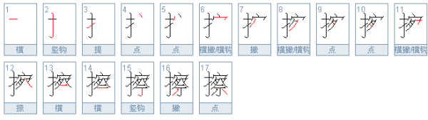 笔画名称 横、竖钩、提、点、点、横撇/横钩、撇、横撇/横钩、点、点、横撇/横钩、捺、横、横、竖钩、撇、点