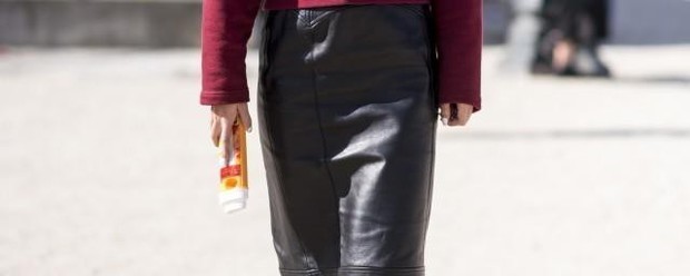 2、粉色的包臀皮裙满满的少女气息,一件波点的衬衫更有几分复古风味,皮质的chocker机车范十足,少女中又带点小叛逆,不得不说钟小姐实在是太会搭。
