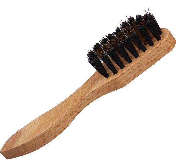 2、用毛刷将磨砂粉均匀涂于洗净晾至半干的绒面上,用量是每双鞋约100克。放置30分钟后,用35℃清水刷去鞋表面的磨砂粉;