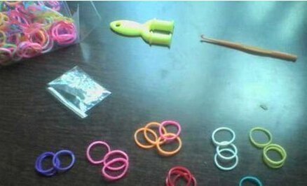 有工具版的是用一个衡烂手长得象弹弓的专用工具、钩针、彩色皮筋、收尾用的小钩
