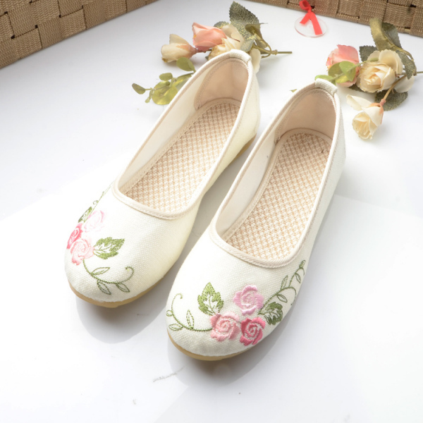 1、说到配搭汉服的鞋子,第一个想要的肯定就是绣花鞋,绣花是中华民族传统的手工艺术品,其刺绣的手法和汉服相得益彰,看起来会更加的协调,从而独具中国特色,所以说是非常不错的。