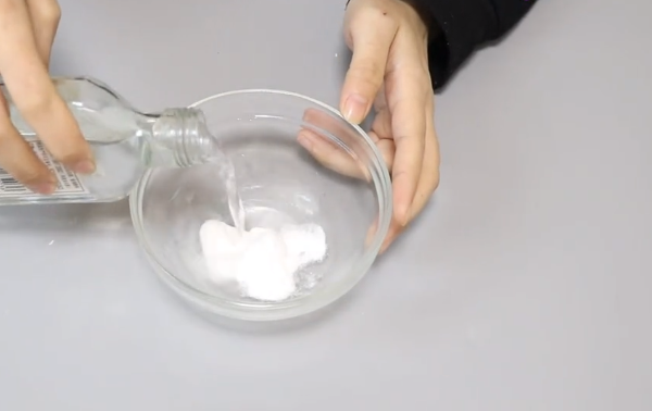 3、倒上白酒,白酒有溶解污渍的能力。