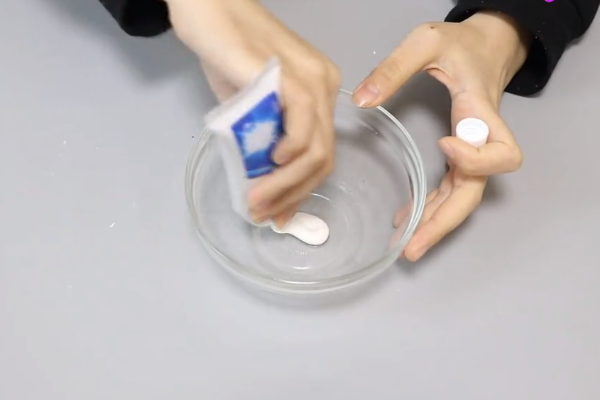 1、先把牙膏挤入杯子内,牙膏有摩擦力可以去污。