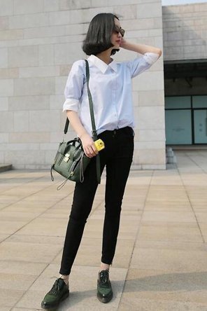 如果是浅绿色,那么下身搭配纯白色会好一些,鞋子也用白色;浅蓝色也比较好,但与白色搭配更适合。 如果是深绿色,下身可配咖啡色和黄色,与咖啡色搭配显得稳重一些,而与黄色搭配富有青春活力。深绿色其实并不好搭配,与黑色搭配我觉得不是很适合,因为这两种颜色再一起会给人一种很暗的感觉,让人觉得没有生气,有些死气沉沉。 如果你下身穿短裤,那么鞋子用帆布鞋会好些。小腿长就穿高帮,常规长度就穿低帮,选白色会是一种很好的搭配;选绿色也可以,这样可以和上衣颜色呼应,而又与裤子颜色有对比。白色和绿色鞋子都是不错
