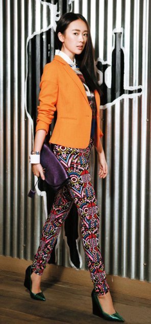 绿色很难与其他颜色组合,搭配不好很容易给人感觉老气或土气。最简单最讨巧的方法是全身穿一种绿色,无论是清新的浅绿还是沉稳的墨绿,都能让你清新活泼。若是搭配,白色、黑色是最理想的选择,银灰色也可以,黄色只能说更适合年轻的小姑娘,其他颜色还是少配为妙。当然还有跟我们的肤色也要相配,如果肤色白皙,自然可以和绿色相映成辉,但如果肤色稍微暗淡些,就该避开草绿、鲜绿和荧光绿等颜色。整理一两个方案供大家参考: 绿色初级方案:绿色半袖衫与蕾丝边装饰的黑色摆裙,简单色彩组合,却能营造不一般的感觉。适合三十岁左右的女士。如果是年轻女孩,帽子可以是蓝黑色、裤子可以是稍微蓝一点的牛仔裤,鞋子可以是白色的波鞋或帆布鞋、凉鞋可以百搭,也可以是黑色高跟鞋。 绿色高级方案:全身绿色的组合想要搭配到恰到好处相对比较困难。绿色短衫与鲜绿色花裙的组合,在色彩的明度上稍有区别,才不会过于隆重,视觉冲力力也大。