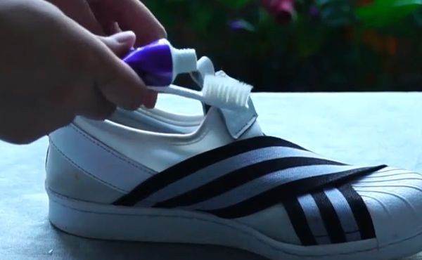 2、紧接着用牙膏把鞋上脏的地方刷洗干净。